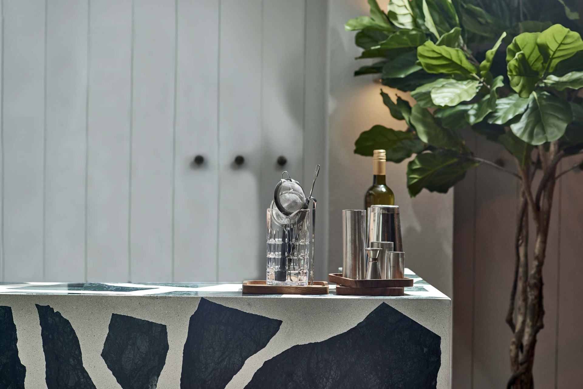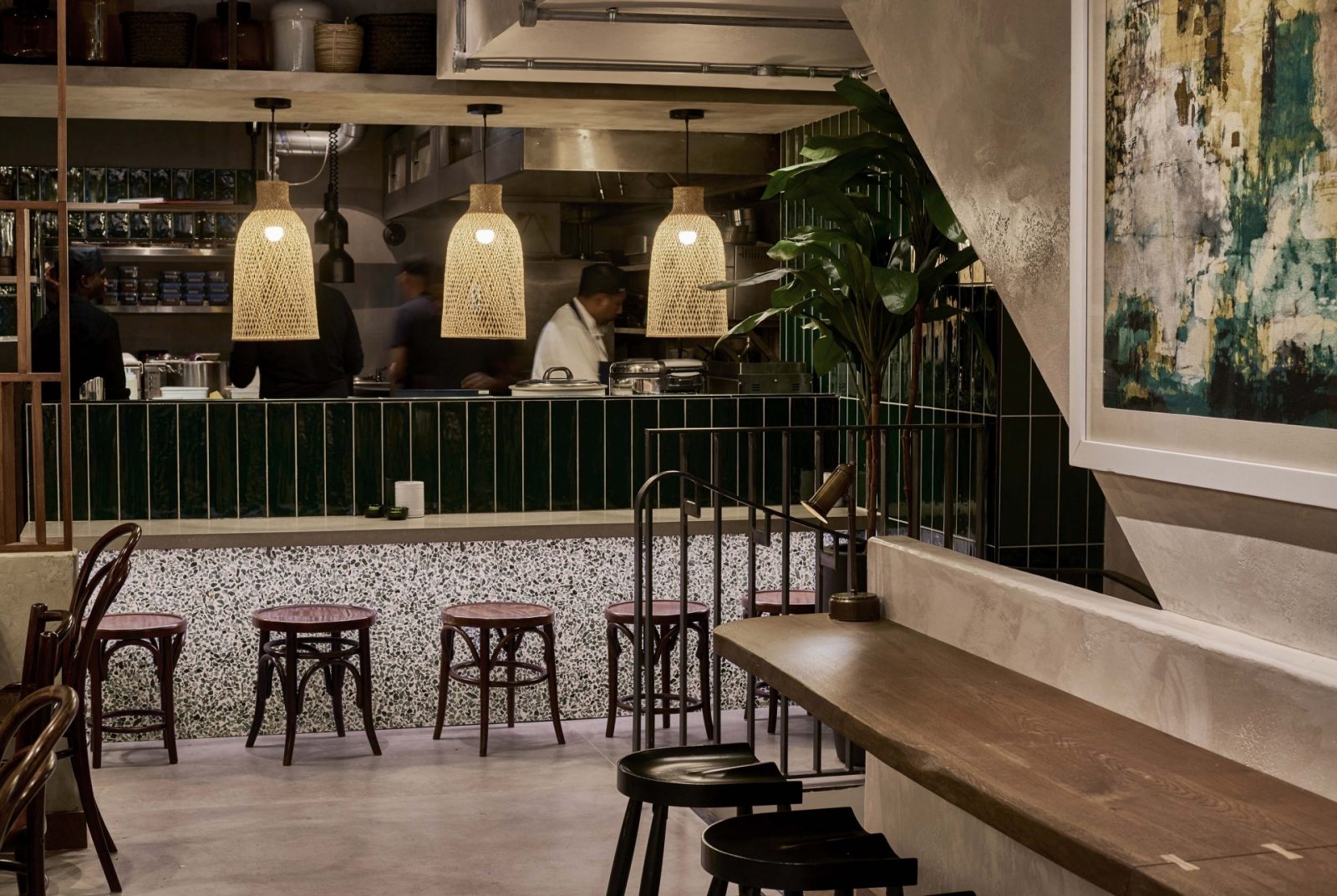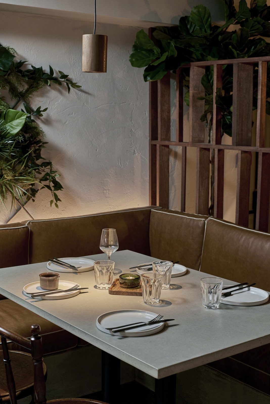 Our interiors are a recreation of this movement in a contemporary setting; using polished concrete, raw woods and bespoke green terrazzo as a base to lay over rich tan leather and plenty of planting for a fresh, lush environment in which to tell the restaurant’s story and highlight the traditional flavours of the menu.