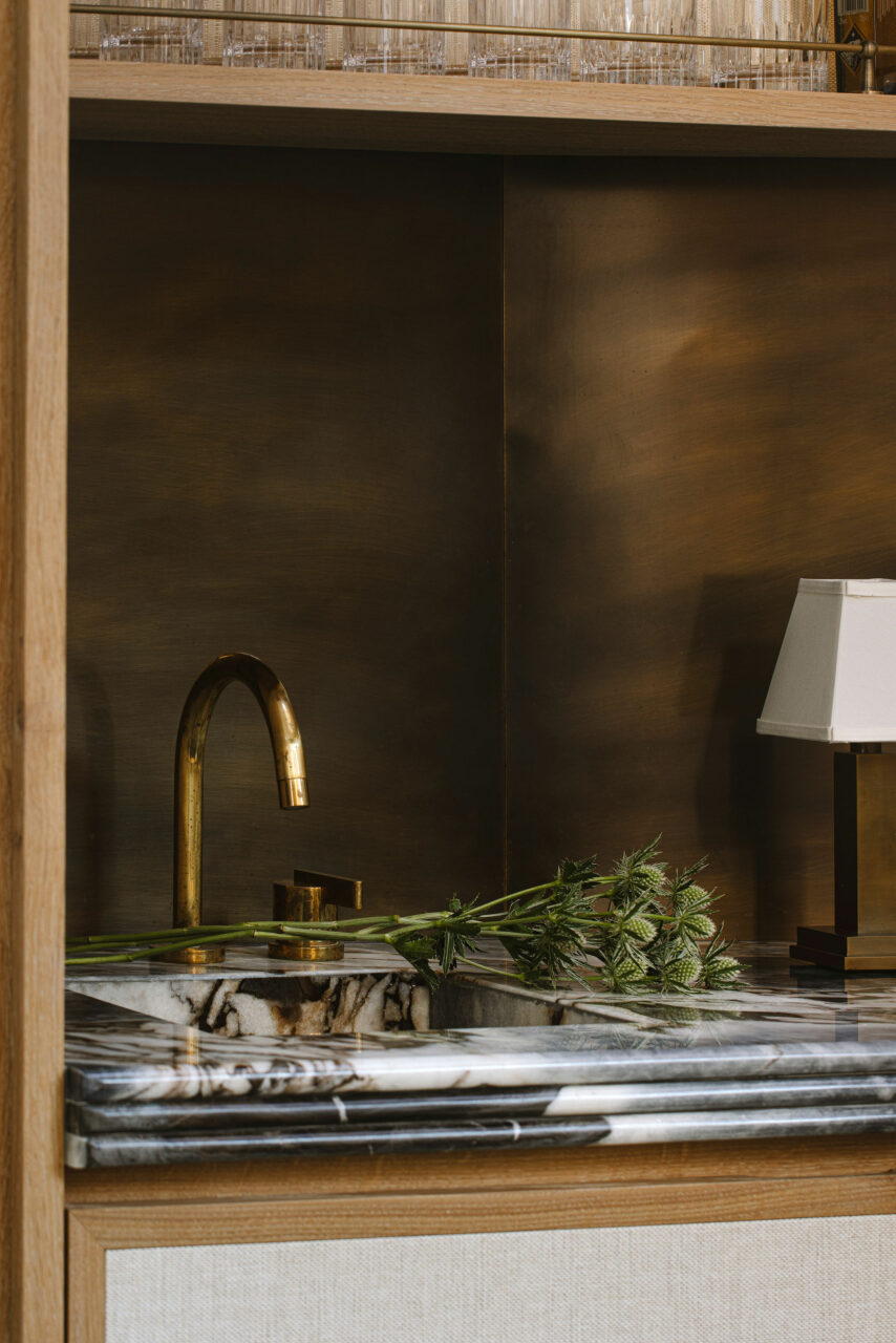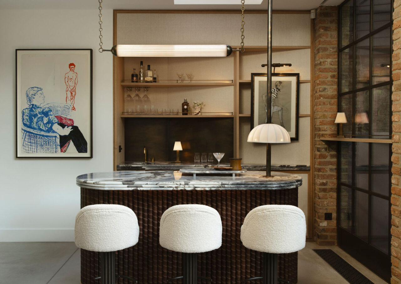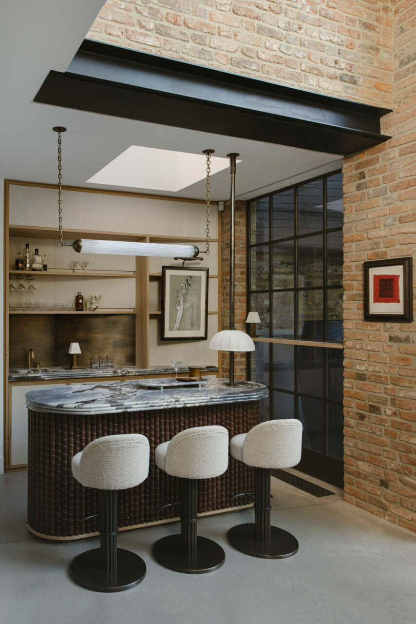 A home bar in the corner of a beautiful home in Islington.