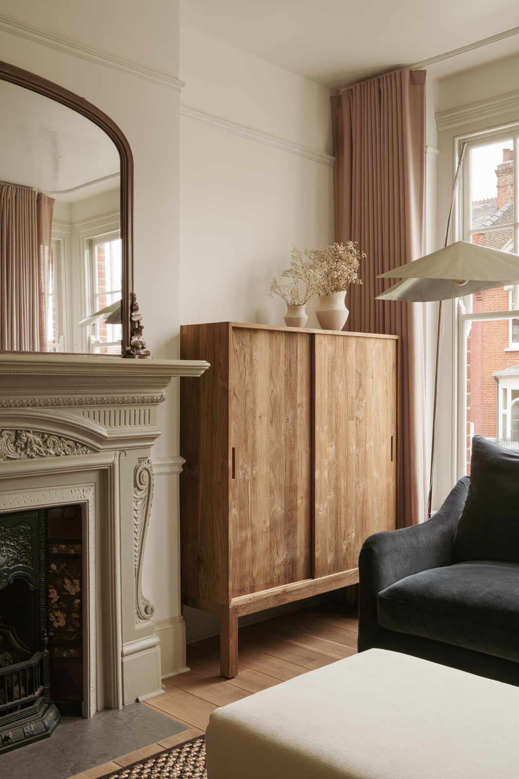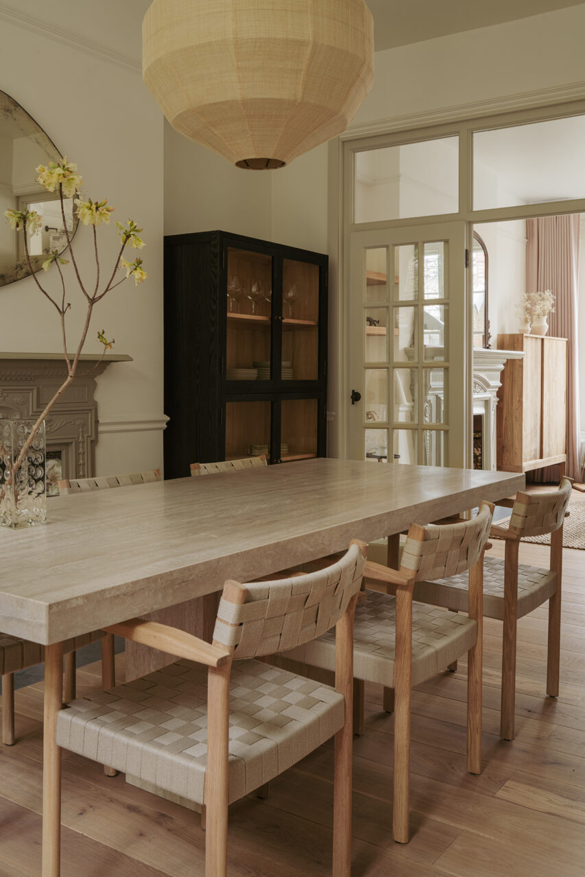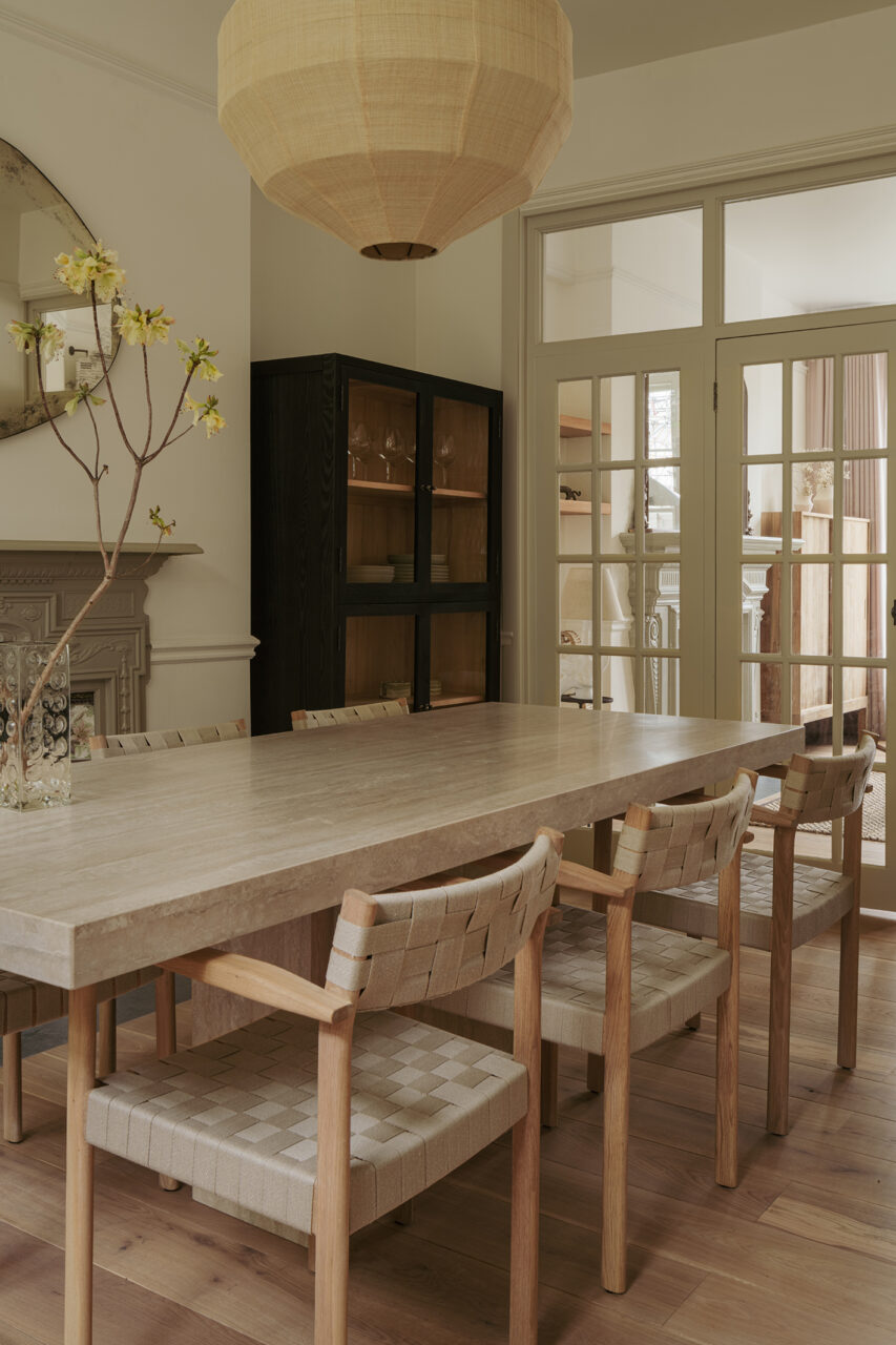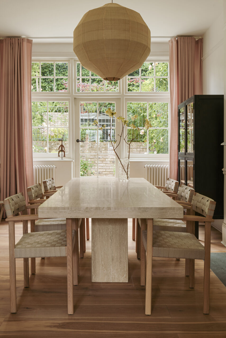 Interior design for the living space of a beautiful Edwardian family home in North London, updating the dining and reception rooms into a cohesive and peaceful entertaining space. We are continuing work on the reconfiguration, design and styling of the master suite and loft floor, as well as furniture and lighting sourcing for the kids room.
